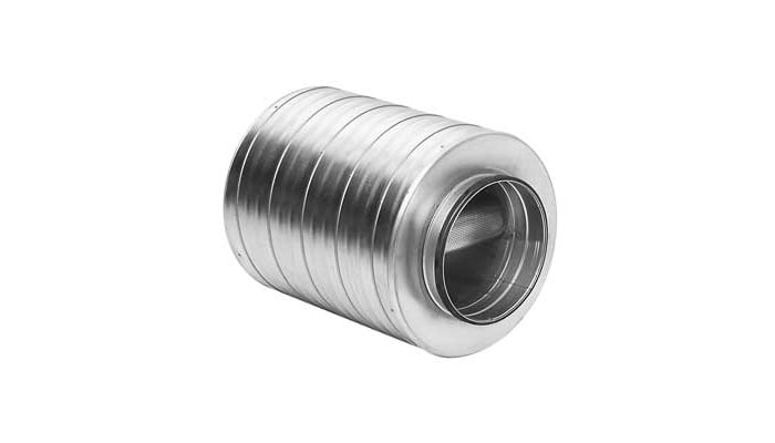 Spessore dell’isolamento 100 mm. Materiale fonoisolante: lana minerale. Silenziatore circolare fornito di blaffa di 100 mm di spessore che fornisce un’elevata attenuazione per tutta la gamma. SLBU 100 viene utilizzato quando viene richiesta una forte attenuazione e il silenziatore SLU non è sufficiente. Testato secondo normativa ISO 7235.