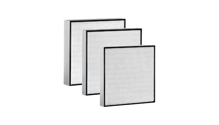 Filtro assoluto efficienza H14 secondo EN 1822 altezza 68 mm, utilizzato in sistemi di trattamento aria con elevato grado di sterilizzazione.