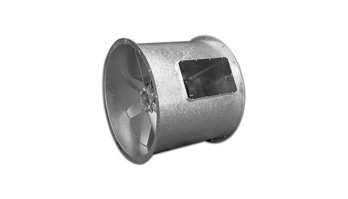 Ventilatore assiale intubato biforcato caratterizzato da girante con pale a profilo alare in fusione d’alluminio, mozzo in fusione d’alluminio e convogliatore in lamiera d’acciaio zincato a caldo. Equilibratura secondo UNI EN ISO 21940-11. Alloggiamento del motore all'interno di un incavo del convogliatore per evitare il contatto diretto con il flusso d’aria e garantire l’estrazione di grandi quantità di fumi caldi, fino a 150°C, con eventuale presenza di residui grassi o umidi. Ventilatore dotato di motore asincrono a corrente alternata IP55 isolamento classe CI F e alimentazione trifase. Accoppiamento diretto con girante a sbalzo, esecuzione 4. Disponibile diametro girante da 500 a 1.000 mm per un range di portata fino a 48.000 m³/h. Disponibile versione con convogliatore in acciaio inox.