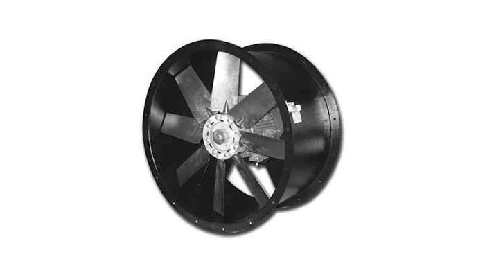 Ventilatore assiale intubato caratterizzato da girante con pale a profilo alare in tecnopolimero o fusione in alluminio, mozzo in fusione d’alluminio e convogliatore in lamiera d’acciaio protetto con verniciatura epossipoliestrica. Equilibratura secondo UNI EN ISO 21940-11. Ventilatore dotato di motore asincrono a corrente alternata IP55 isolamento classe CI F, alimentazione monofase o trifase in base alla taglia. Accoppiamento diretto con girante a sbalzo, esecuzione 4. Costruzione conforme alle norme IEC/EEC (UNELMEC). Disponibile diametro girante da 310 a 1.600 mm per un range di portata fino a 80.000 m³/h. Disponibili versioni con convogliatore corto, medio o lungo, con girante pale in alluminio, con convogliatore in acciaio inossidabile o alluminio, con flusso d’aria effettivamente reversibile, con flusso d’aria da girante a motore, Atex, evacuazione fumo e calore secondo EN 12101-3.