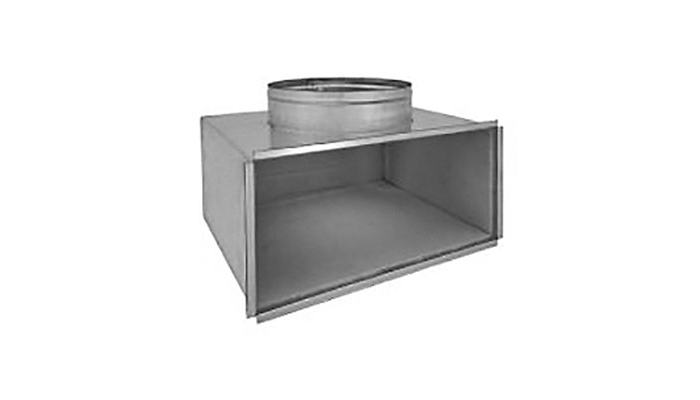 Plenum con stacco laterale per bocchette e griglie, versione isolata e non isolata.