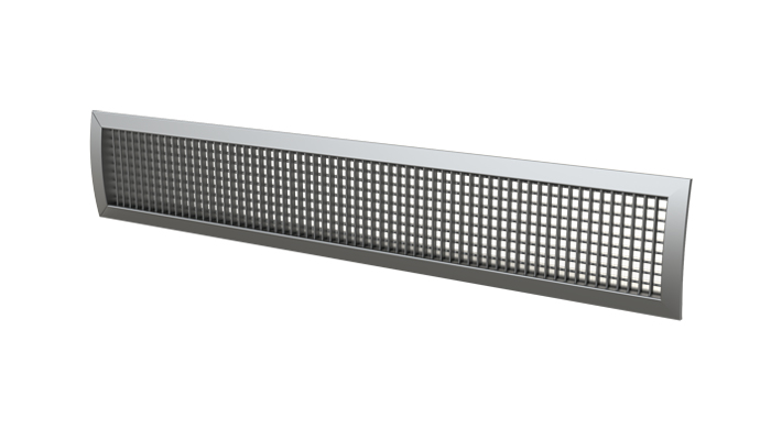 Bocchetta con passo alette 15 mm per installazione su canale circolare. La bocchetta è disponibile con fila singolo filare di alette verticali o doppio filare di alette verticali anteriori e alette orizzontali posteriori. Installazione della bocchetta con viti nei fori previsti sul telaio.