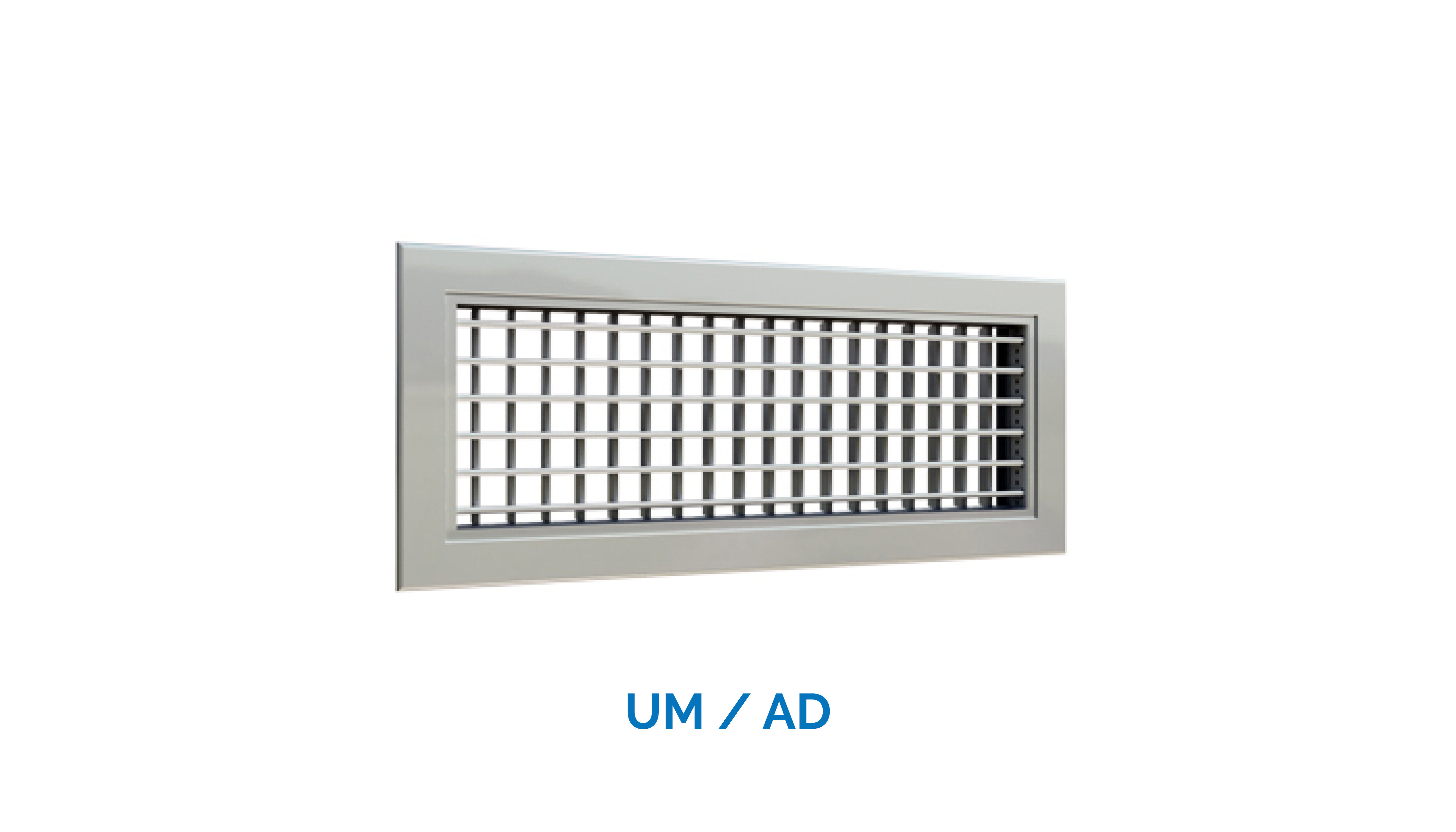 Bocchetta regolabile, ad alette orientabili singolarmente, ad uno o due ranghi. Il primo rango, ad alette verticali, serve per controllare il lancio laterale, modificando l’angolo di diffusione del flusso d’aria, il secondo rango ad alette orizzontali, è previsto al fine di correggere la caduta. Cornice in alluminio estruso, larghezza 25 mm, a spigoli arrotondati costruita in quattro parti collegate tra loro in modo invisibile mediante assemblaggio meccanico. Alette in alluminio estruso con interasse 20 mm, imperniate in una corsia in polipropilene a sua volta inserite nel telaio.