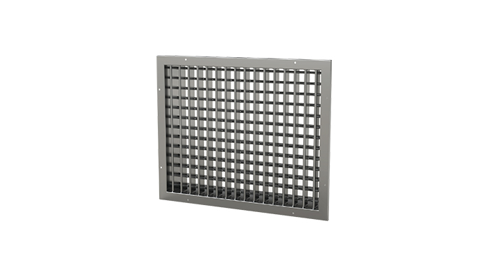 Bocchetta di mandata dell’aria in acciaio, con doppia fila di alette regolabili manualmente e orientabili singolarmente.