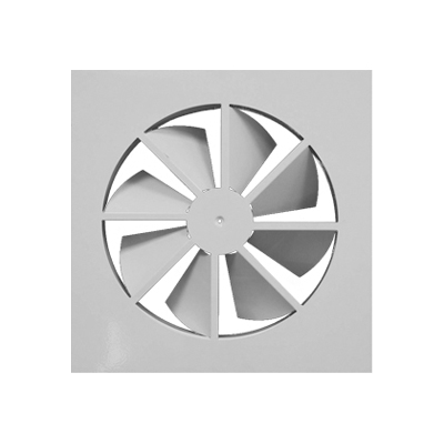 Diffusore composto da un pannello esterno di contenimento e da un corpo centrale circolare composto da dei deflettori stampati fissi. Questi elementi sono posizionati univocamente e realizzano quella condizione ove il flusso dell’aria assume un moto elicoidale centrifugo con un grande effetto d’induzione. Per questa ragione il diffusore è idoneo per immettere aria fredda o calda con una grande differenza di temperatura rispetto all’ambiente. KPZ è utilizzato per altezze di installazione da 2,6m a 5.1 m.