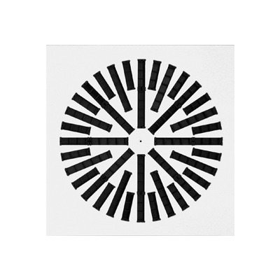 Diffusore a pannello rotazionale con feritoie a stella, deflettori regolabili (KQ1), regolabili a scomparsa (ASKQ1) o fissi (KQ8).