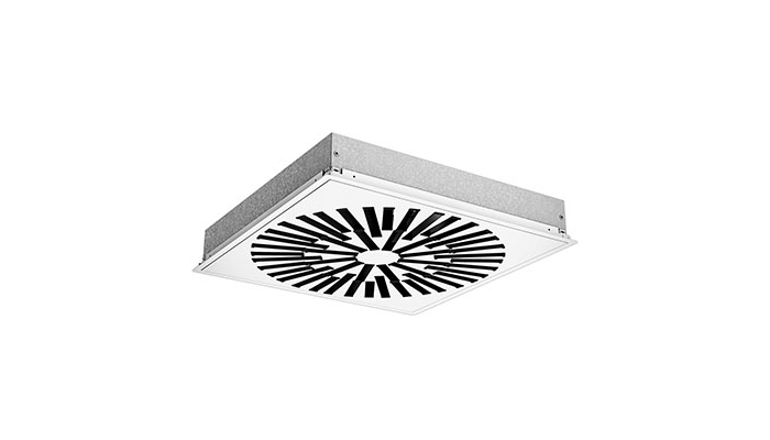 RS16 è un diffusore quadrato rotazionale con deflettori regolabili, adatto sia per mandata che per ripresa. L'elemento rotazionale integrato garantisce una distribuzione ottimale dell’aria e un'elevata induzione, ed è pertanto particolarmente indicato per la mandata di aria con elevati DT estivi. Il particolare design del frontale permette l’utilizzo del diffusore con portate elevate.