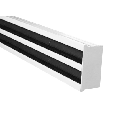 Diffusore lineare ad alta induzione senza cornice per installazione a scomparsa in controsoffitti chiusi. Diffusore fino a 3 feritoie con larghezza feritoia 20,5 mm. Deflettore da 100 mm regolabile singolarmente. Lunghezze: 600, 800, 1000. 1200, 1500, 2000 mm. Altezza di installazione: da 2,7m a 4 m con differenze di temperatura tra aria di mandata e aria ambiente da ±10K. In caso di installazione a parete la distanza suggerita dal soffitto è ≤ 25 cm per poter sfruttare l'effetto Coanda.