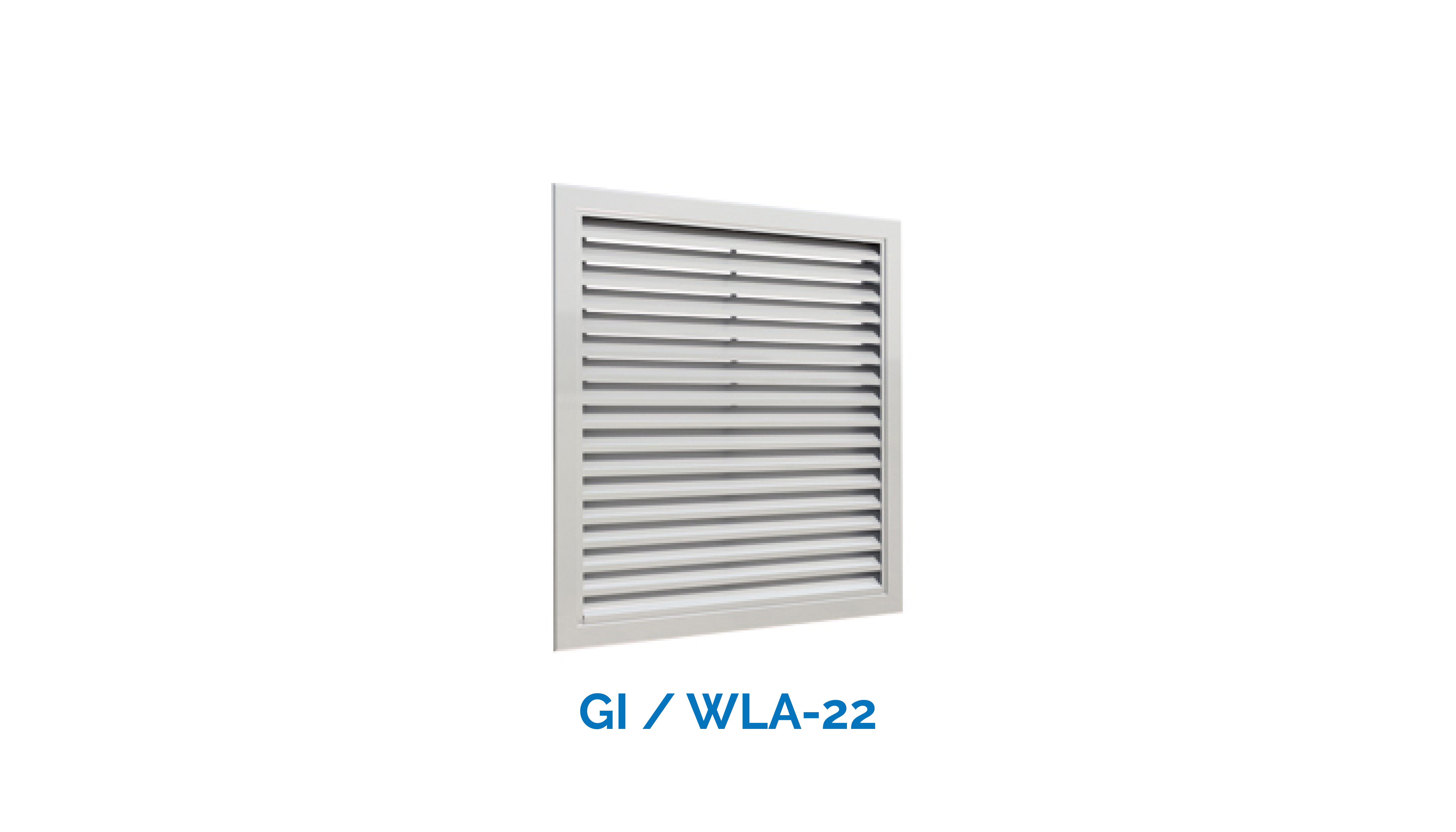La serie GI è rappresentata da una gamma di griglie di aspirazione ad elementi orizzontali fissi inclinati a 49° utilizzate per l’immissione di aria esterna, per l’espulsione dell’aria esausta dagli ambienti, per il ricircolo dell’aria nelle strutture interne, e per la ventilazione generica. Si raccomanda nel posizionamento esterno di queste unità terminali di applicare una rete protettiva antivolatile.