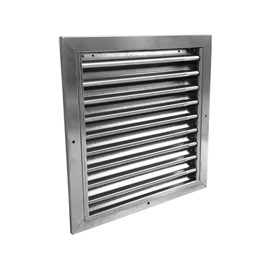 Griglia industriale utilizzata per aspirazione ed espulsione dell’aria negli impianti di ventilazione e condizionamento. Telaio in lamiera d’acciaio zincato, spessore 1,0 mm. Alette in lamiera di acciaio zincato, spessore 0,8 mm, con particolare profilo antipioggia. Passo alette 50 mm. Prove delle perdite di carico eseguite secondo la normativa UNI CTI 8728 presso l’Istituto Giordano (Rapporto di prova N.136363). Prove del rumore autogenerato eseguite secondo la normativa UNI EN 25135 presso l’Istituto Giordano (Rapporto di prova N.148829).