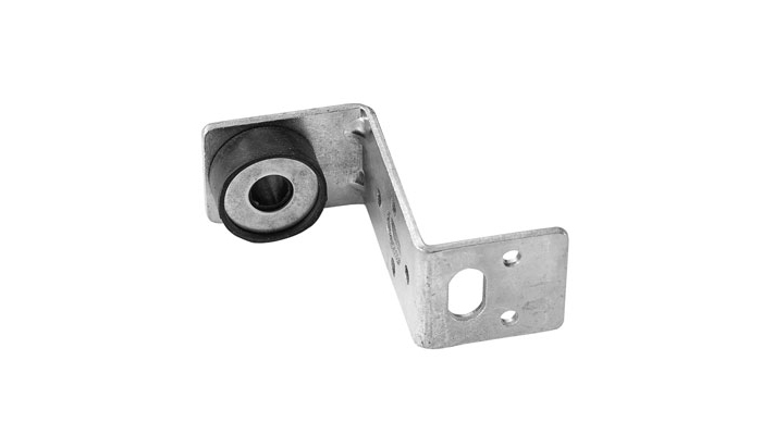 Sospensione antivibrante M8 a Z in acciaio zincato con elemento in gomma.