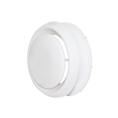 Valvola in plastica RAL 9010, progettata per il montaggio a soffitto.
