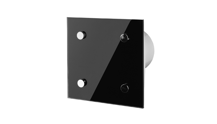Unita di ventilazione dal design moderno ed estetico con motore a basso consumo energetico. Il motore e dotato di protezione termica. Grado di protezione IP34. L'unita e progettata per il funzionamento in continuo e non richiede manutenzione. La sua progettazione consente un'elevata effi cienza e una lunga durabilita del ventilatore. L'unita e dotata di serranda di non ritorno, appositamente progettata per evitare il ritorno dell'aria e perdite di calore in fase di arresto del ventilatore. Involucro e ventola in ABS resistente ai raggi UV, finitura in vetro organico, colore nero.