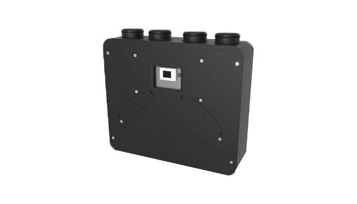 Unità di ventilazione residenziale a doppio fl usso con recupero di calore ad alto rendimento. Per una rapida installazione, l'unità è fornita completa di sistema di controllo e connessione alla rete di alimentazione elettrica.
