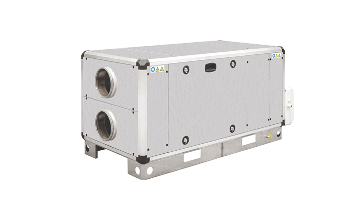 Unità di ventilazione non residenziale (UVNR) equipaggiata con uno scambiatore di calore controcorrente in alluminio (certificato Eurovent) ad alta effi cienza e ventilatori elettronici EC a pale rovesce. Le sezioni filtranti sono: fi ltri ePM1 70% (F7) per il flusso d’aria fresca e fi ltri ePM10 50% (M5) per il flusso d’aria d’estrazione. Il bypass totale automatico di serie consente di sfruttare condizioni favorevoli esterne all'edificio per il free cooling (o free heating) in modo automatico.