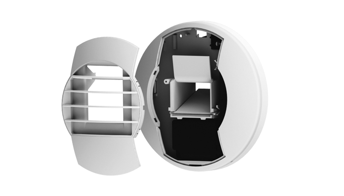 Involucro in polistirene, colore bianco. Griglia removibile di colore bianco (standard).