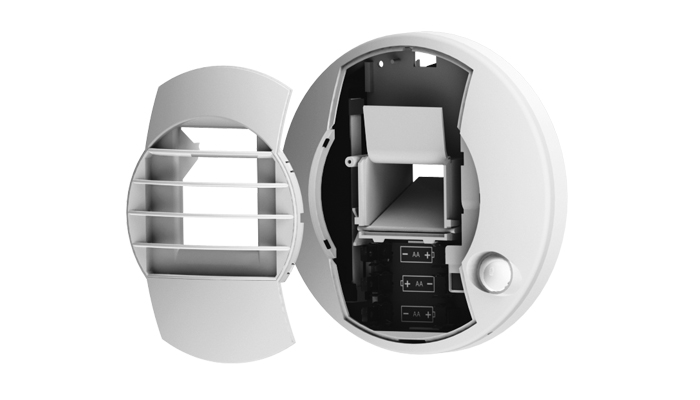 Garantisce una portata variabile in funzione dell'umidità relativa e fornisce una extra portata temporizzata 30 minuti tramite sensore di presenza (2 pile da 1,5V, non fornite).
