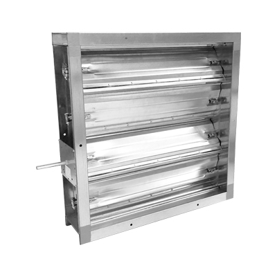 Serranda di regolazione rettangolare in acciaio zincato con alette passo 150 mm.
