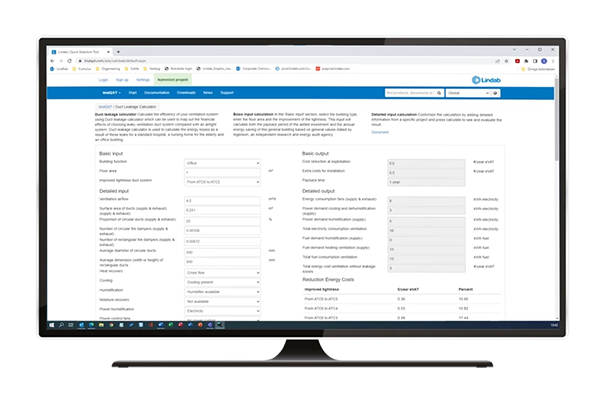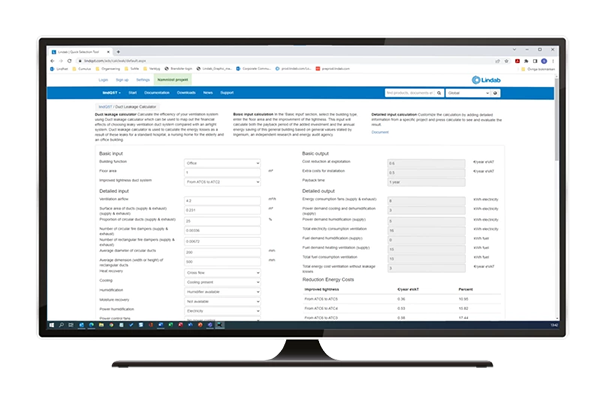 Lindab ha sviluppato lo strumento web Calc-Leak. Lo strumento calcola l'efficienza del sistema di ventilazione utilizzando il calcolatore delle perdite aerauliche del condotto, sia in ottica di recupero dell'investimento che di risparmio energetico. Il calcolatore delle perdite di condotto può essere utilizzato per calcolare gli sprechi energitici per un ospedale standard, una