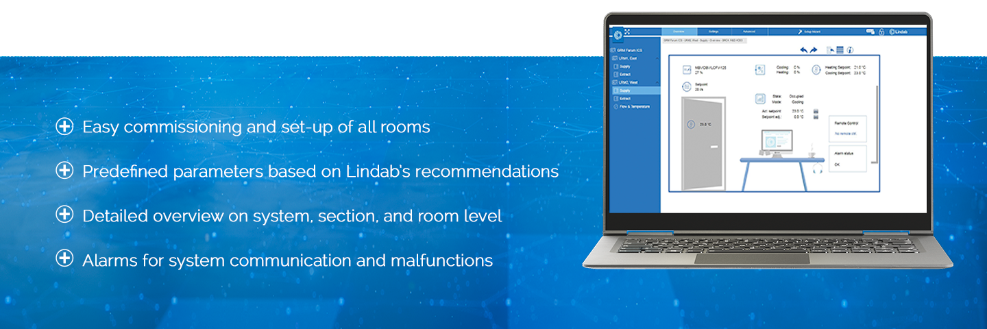La ventilazione controllata on demand in ogni ambiente è una solida base per garantire il miglior clima indoor: metti Lindab Pascal System Management al primo posto e avrai il pieno controllo del clima indoor.