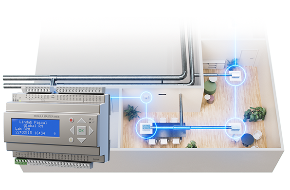 Regula Master è un controller avanzato e altamente intelligente per la gestione del sistema - un cervello che traccia e controlla tutto quanto avviene in un sistema di ventilazione indoor. Quando il Regula Master è collegato al sistema DCV e opera con il sistema Lindab Pascal, hai tutto ciò che serve per un intelligente ventilation management system che monitora tutti gli ambienti nell'edificio.