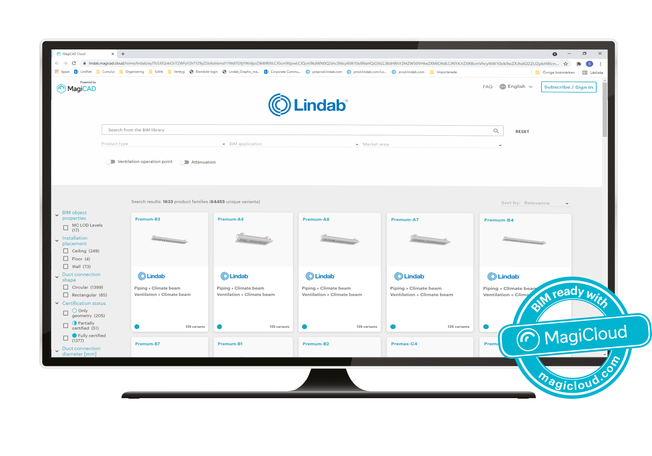 MagiCloud è una libreria online dei prodotti MEP dei produttori leader in tutto il mondo, tra i quali Lindab. I progettisti MEP possono accedere ai prodotti Lindab visualizzati come modelli 3D, con dimensioni precise e dati tecnici completi per una completa implementazione in sistemi BIM. E’ possibile dunque preparare specifiche ed importare modelli utilizzabili in Revit, AutoCAD e software compatibili.